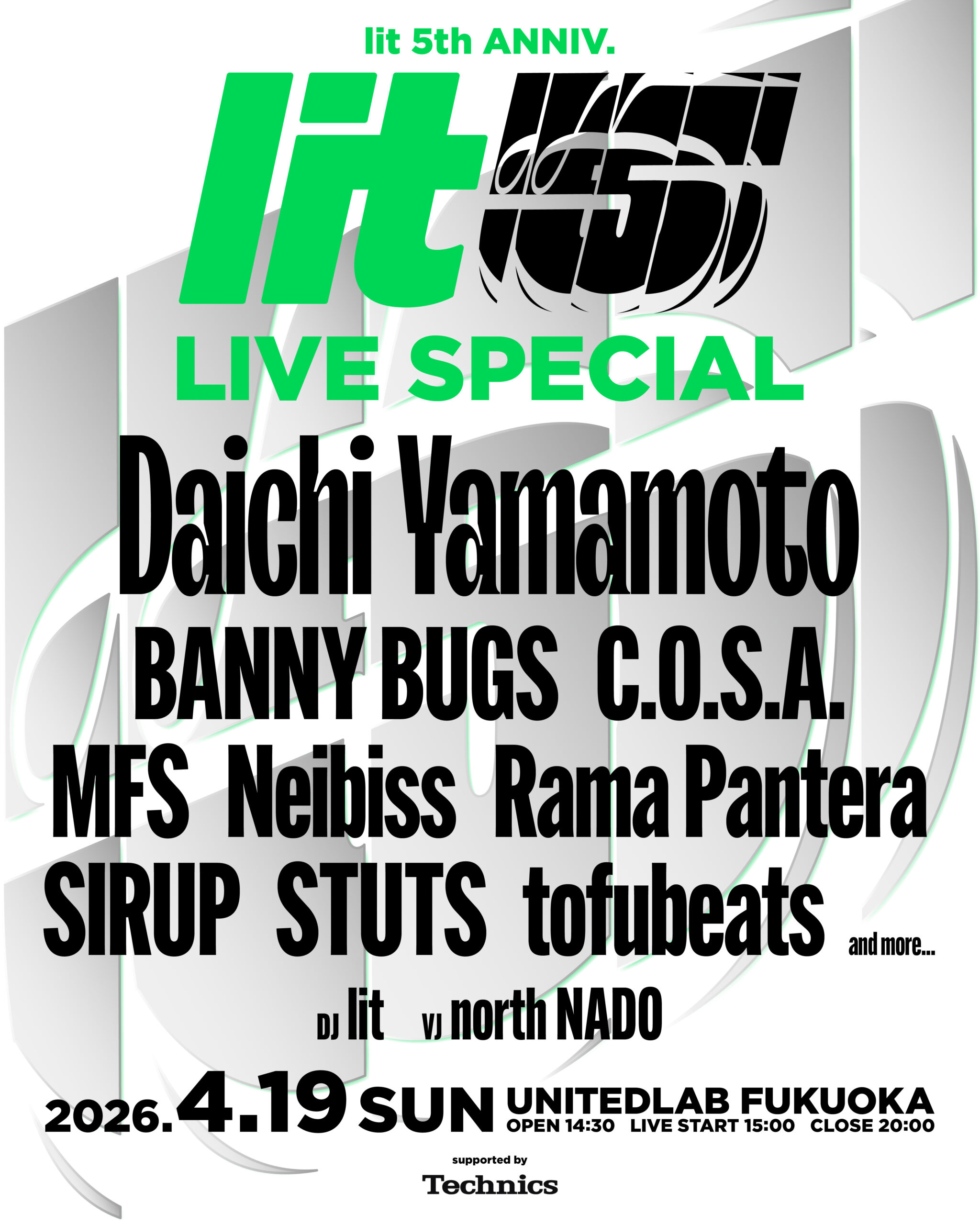 福岡発パーティー「lit」5周年イベント、4月19日(日)に開催決定。